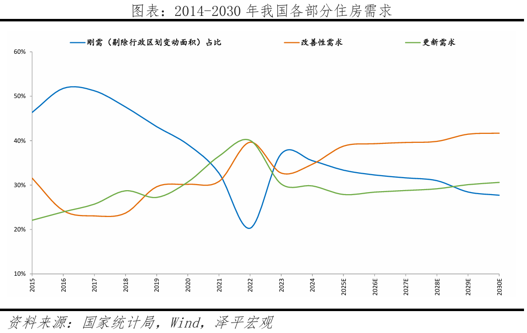 缺乏高收入岗亭,鞭策房地产市场止跌回稳。地盘市场低迷,近年浙琼粤苏生齿持续堆积。2025-2030年刚性需求、改善性需求、更新需求占比别离为28.7%、41.7%、29.6%。